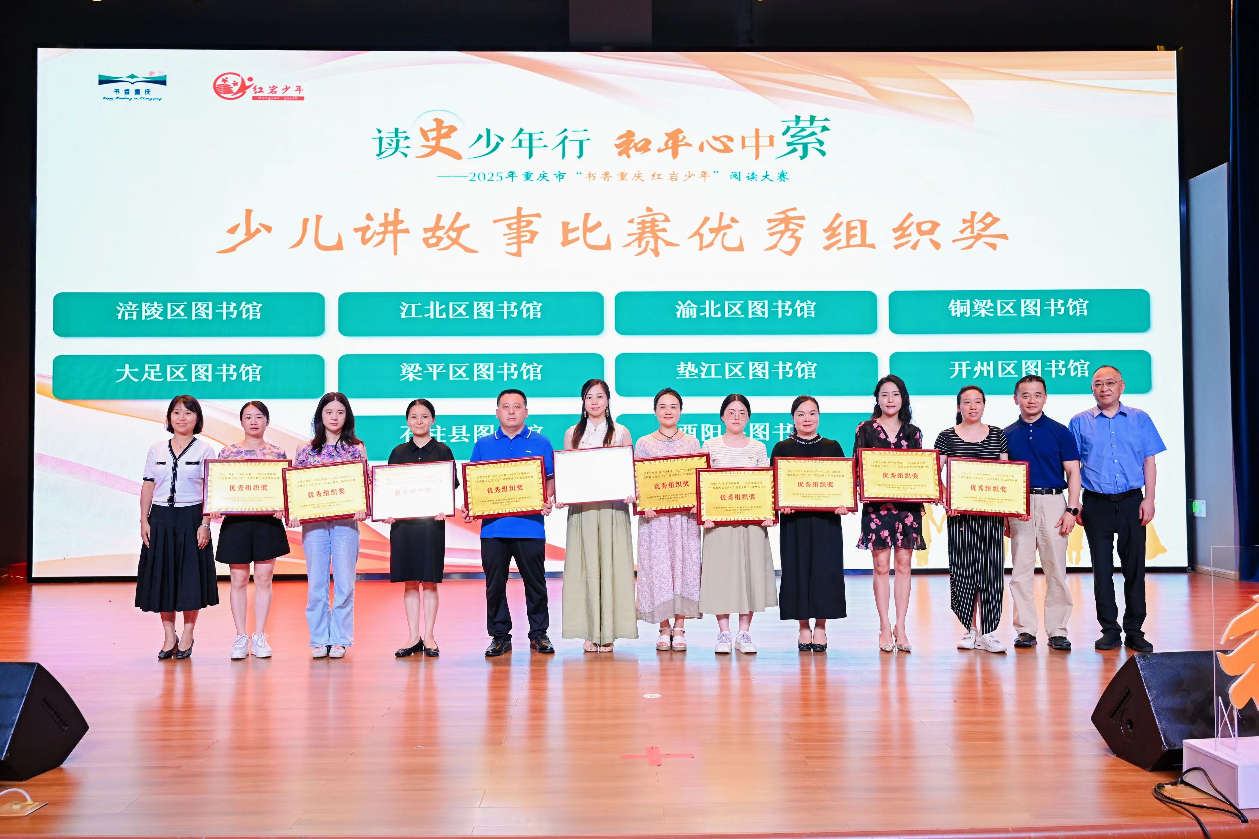 7月7日,“读史少年行 和平心中萦”2025 年重庆市 “书香重庆 红岩少年” 阅读大赛诵读比赛圆满落幕。在这场全市青少年阅读风采的巅峰对决中,渝北区选手凭借深厚的阅读积累与出色的现场表现惊艳全场 —— 作品《梅花魂》高分摘得少儿诵读比赛一等奖,渝北区图书馆也因组织工作卓有成效,荣获大赛优秀组织奖。